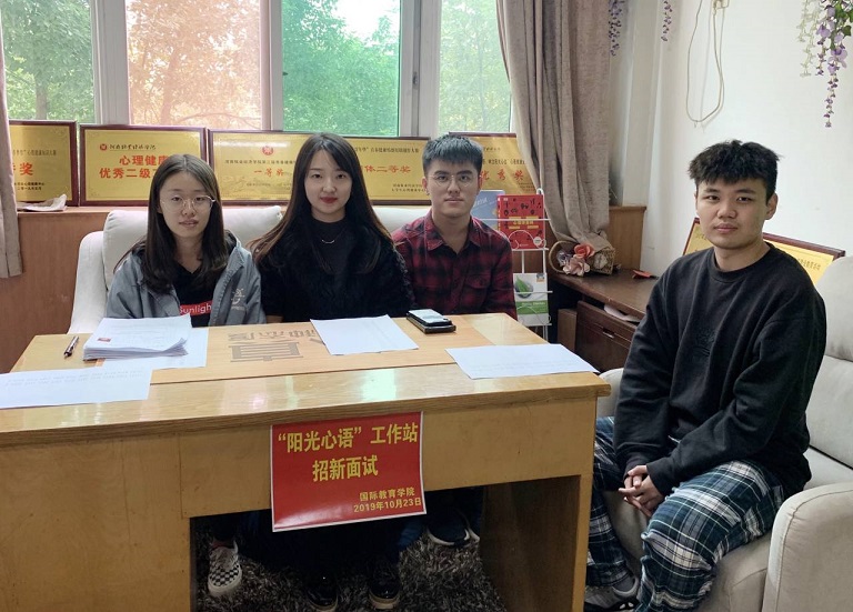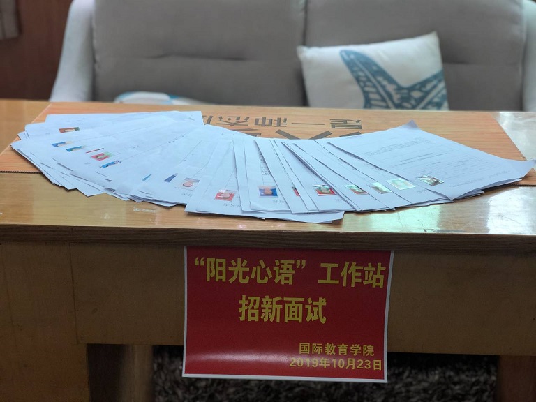 2019年10月23日中午一点伟德国际1949官网“阳光心语”工作站新一轮招新面试活动于行政楼311教室召开。阳光心语工作站站长丁玮老师以及工作站负责人郭猛、李垲熠、李珂均出席了本次面试并担任面试官。本次招新是为了给工作站注入“新鲜血液”,为同学们提供一个更广阔的学习空间,一个了解并热爱上心理的平台。