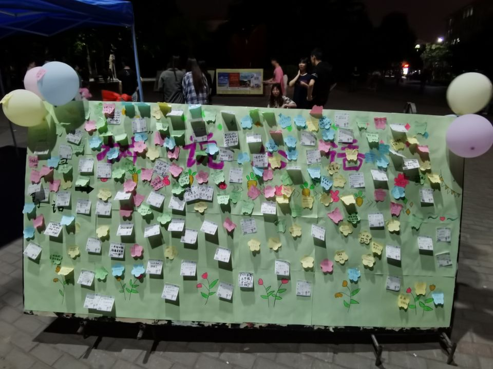 本次活动共设置有四个环节。“烦恼消灭站”。参与该活动的同学匿名写下自己的烦恼,然后参加现场趣味活动或与心理工作站工作人员进行交流,获取正向支持。参与者得到缓解和释放后,可将自己写下的烦恼投入到“垃圾桶”中。“房树人测验”。参与者只需在一张白纸上分别画出房屋、树和人。该测试是心理投射测验的一种,可以通过参与者所画的房子、树和人,了解其潜意识的心态,情绪,性格,人际交往等状况。“心灵寄语”。参与者在完成前两项活动后,可以在卡片纸上写下对自己或亲人朋友想说的话语。有人写下了自己对于生活的态度、有人写下了自己对家人想说的话等,通过这种方式引导同学们关爱自我、了解自我、接纳自我,保持阳光、积极、乐观心态,发现生活中的快乐和幸福。“幸运套套圈”活动。参与者在限定的距离处扔掷套圈,套取心理工作站工作人员精心准备的小礼品。现场气氛活跃,同学们看着琳琅满目的礼品,纷纷跃跃欲试,用自己的双手套住快乐、圈住幸福。