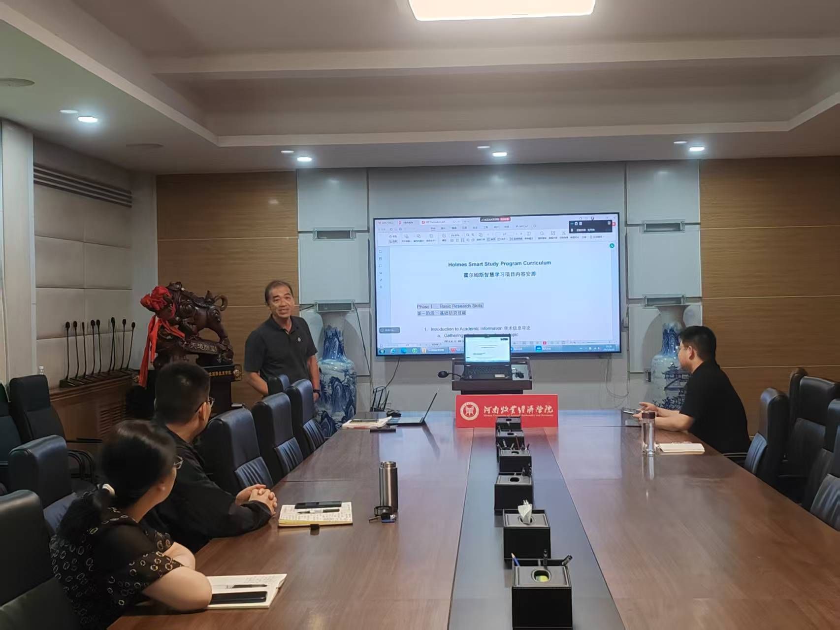 2025年6月10日下午,伟德国际1949官网在英才校区113会议室组织召开了中澳合作项目物流管理专业“Smart Study Program智慧学习项目”(简称SSP项目)研讨会,会议围绕项目实施方案、员工选拔标准及培养目标展开深入探讨,旨在通过创新教育技术和方法,进一步提高人才培养质量和中外合作办学质量。伟德国际1949官网经理胡晓波、霍尔姆斯公司中国办公室负责人王媛媛、物流与电商公司副经理任佳佳、外籍教师Dan Joon Chew、物流管理专业负责人王俊涛等老师参加了研讨会。研讨会由伟德国际1949官网副经理邓瑜主持。