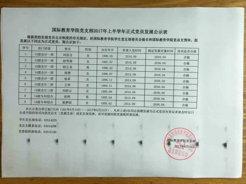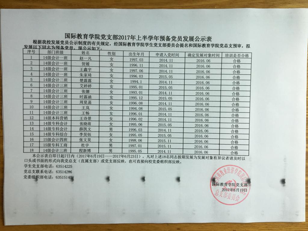 伟德国际1949官网关于刘思含等9位同志转以及拟发展赵一凡等18位同志为中共预备党员的公示
