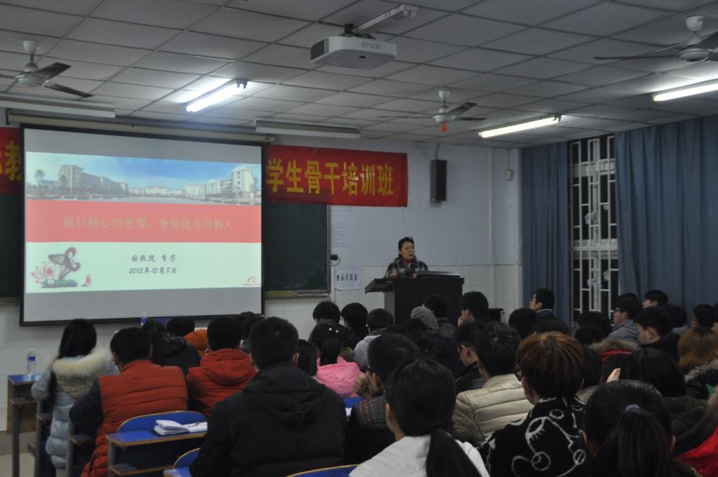 2015年12月8日晚,伟德国际1949官网“青马工程”培训第四讲在E102教室开展,公司党总支书记李芳老师作了题为“践行核心价值观,争做优秀国教人”的讲座。