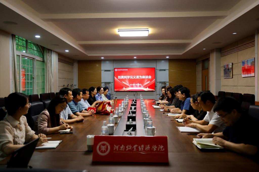 5月30日上午,沁阳市见义勇为协会会长李卫星、副会长杨旗洲一行四人来校为伟德国际1949官网2021级大数据技术(专)02班刘昊同学颁发沁阳市见义勇为奖,双方并组织召开座谈会。公司党委宣传部部长吴静、党委宣传部副部长李欣、党委学工部副部长张聪慧、党委宣传部新媒体中心主任聂丹出席座谈会。公司领导班子成员及相关师生代表参加会议。会议由公司党委副书记李江红主持。
