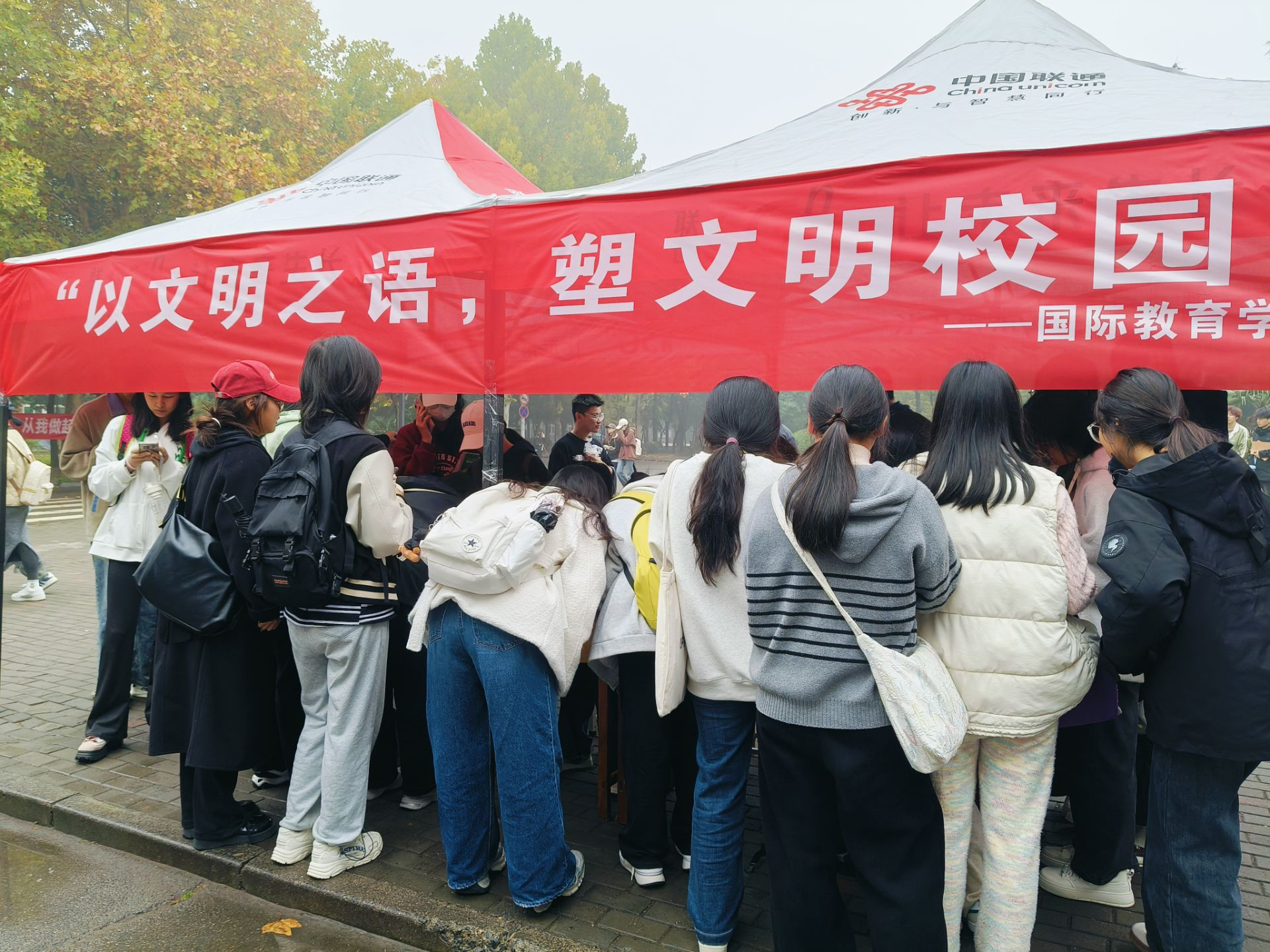为了营造文明、和谐的校园环境,引导员工认识到文明行为的重要性,树立正确的价值观和行为准则,提升员工的文明素养和文明意识,养成良好的行为习惯。伟德国际1949官网生活权益部于11月13日在红色花蕊处,面向英才校区全体员工开展了“以文明之语,塑文明校园”文明标语活动。