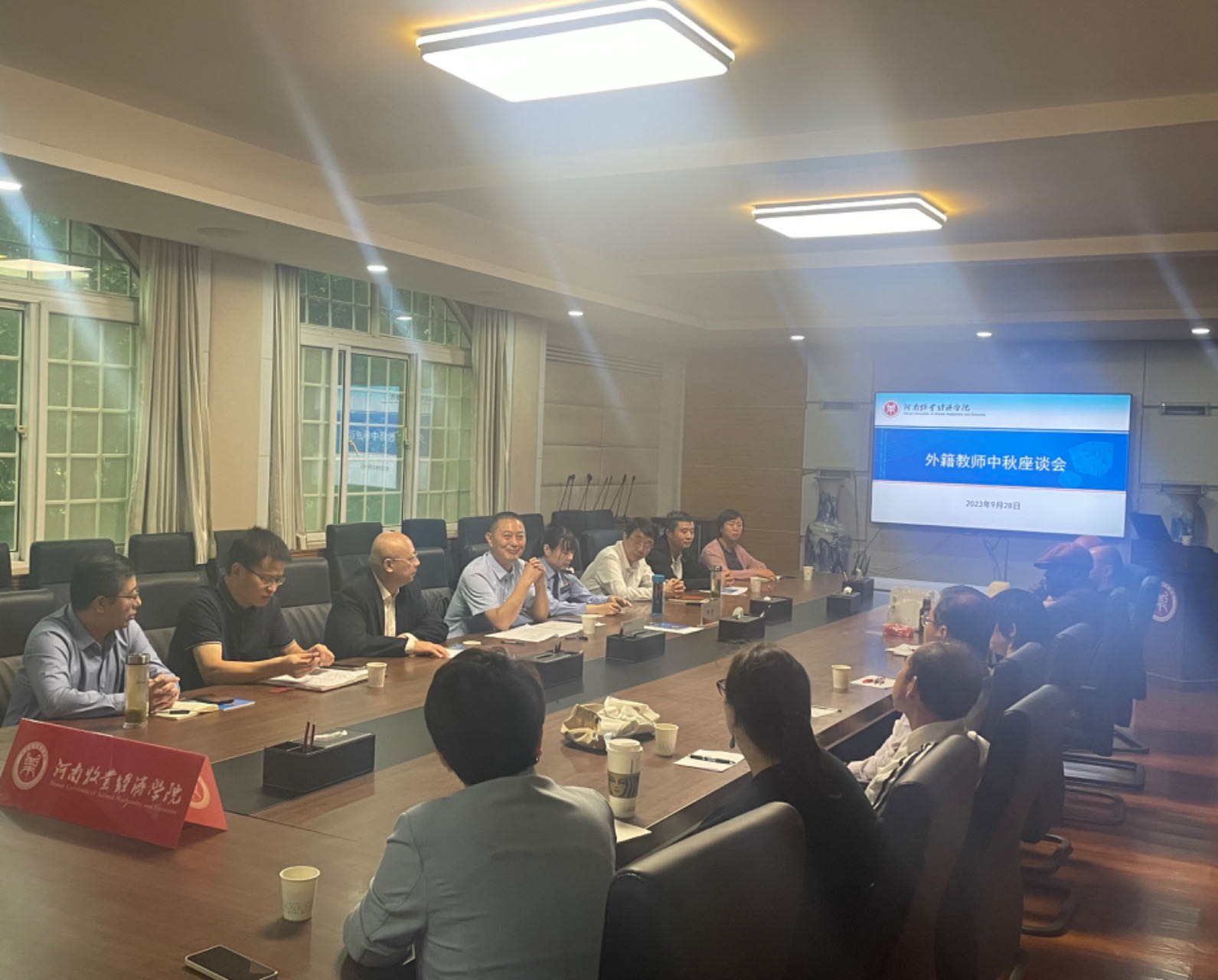 月近中秋圆,情至中秋酣。值中秋佳节来临之际,公司于9月28日召开外籍教师中秋座谈会。郑州市公安局出入境管理处指导员钟丹警官应邀出席。8名外籍教师以及公司党委统战部、保卫处、后勤处、金融与会计公司、外国语公司、伟德国际1949官网、卡洛理工国际公司外事工作负责人及外教管理人员、国际交流与合作处相关人员参加座谈会。座谈会由国际交流与合作处处长赵建华主持。