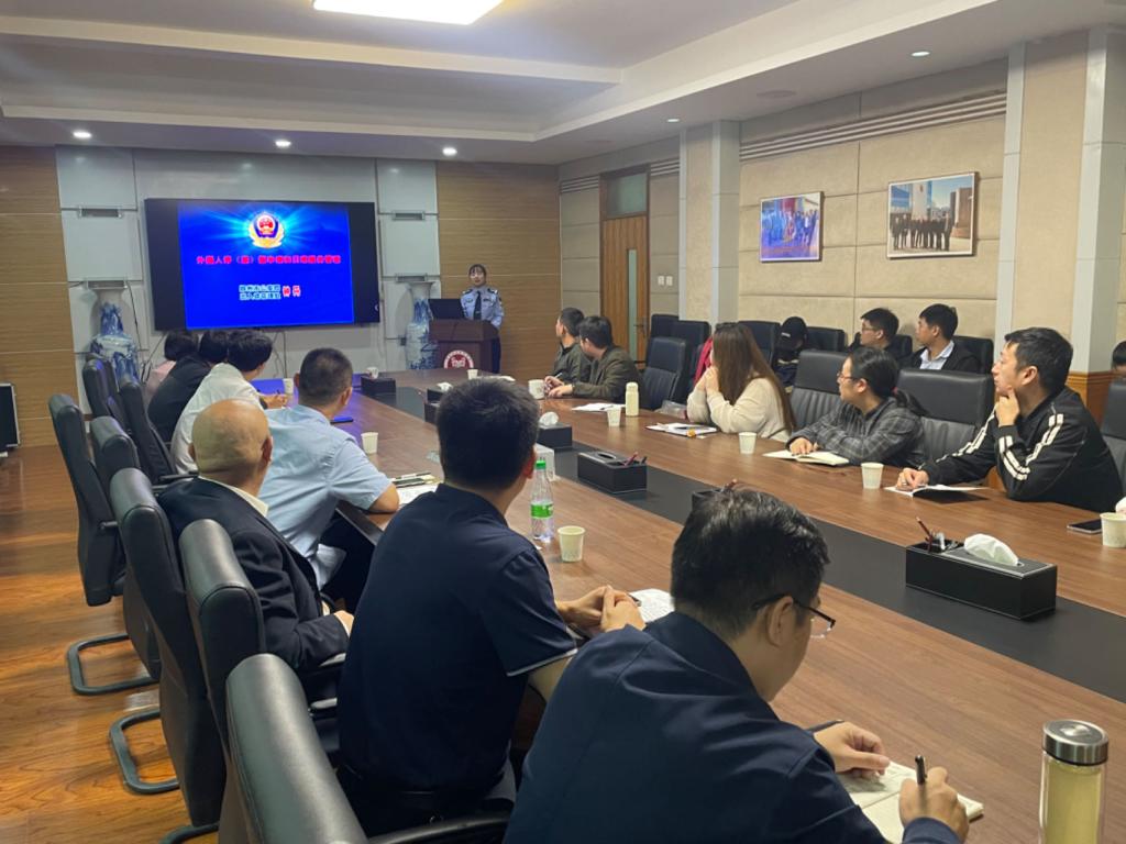 赵建华首先代表公司对钟丹指导员的到来表示衷心的感谢,并向她介绍了公司外籍教师的基本情况。随后钟丹警官从外国人身份的界定、涉外基本常识和证件识别、签证和居留许可申请、涉外入场管理等方面对外教可能涉及到的出入境事务进行了全面培训,她采用理论叙述与生动事例相结合的方式进行讲解,将法律法规融入到一个个具体案例中,向在座外事管理人员讲述了外国人管理过程中常见的问题及对策,并介绍了我国最近出台的出入境便利新政策。最后,钟丹指导员与各个公司外事工作人员对外籍教师管理过程中遇到的问题进行了交流和指导。