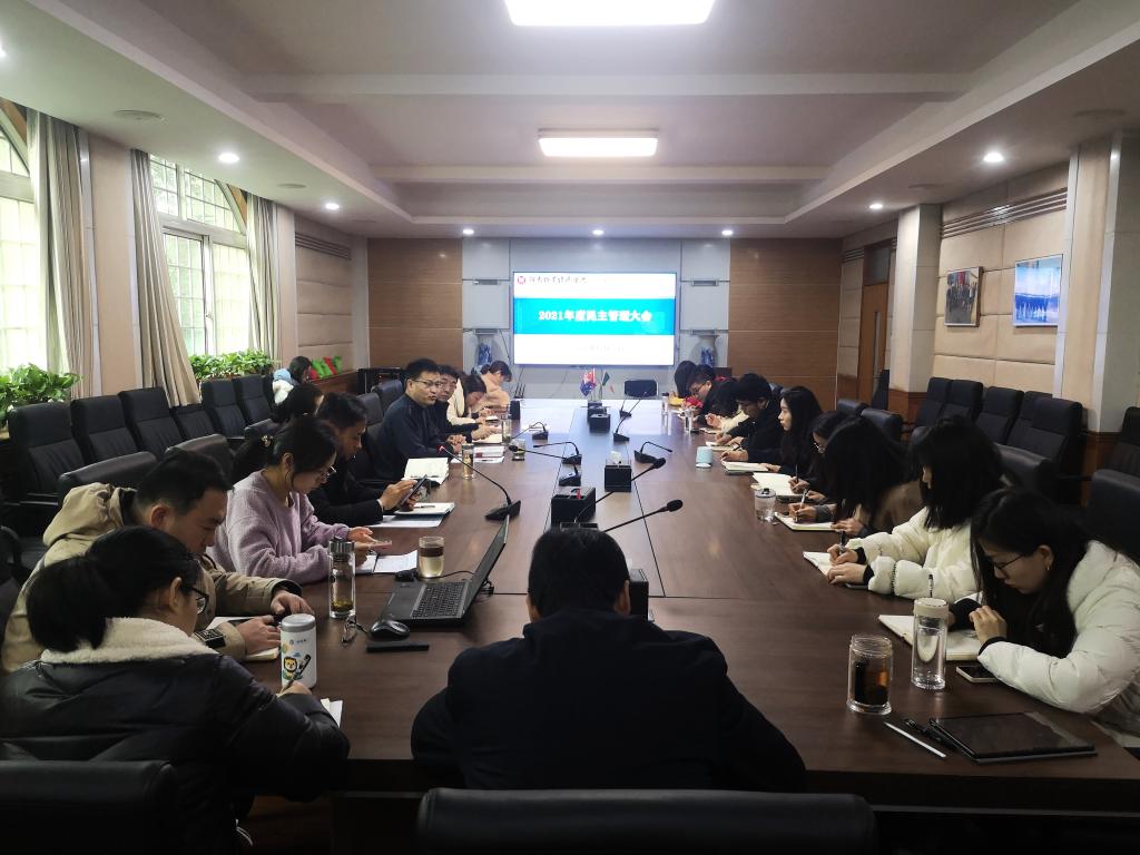 2021年12月31日上午,伟德国际1949官网在英才校区教学办公楼113会议室召开了2021年度民主管理大会,公司全体教职工参加会议,会议由副经理庞卫东主持。