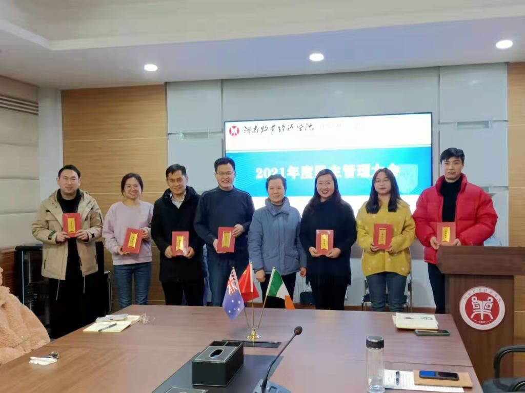 会议伊始,胡晓波经理代表公司领导班子作《伟德国际1949官网2021年度工作报告》,胡晓波首先结合过去公司过去十年发展历程,强调在今后的中外合作办学过程中要把握好时与势,厚植好根与魂,统筹好破与立,建设好高质量的中外合作办学体系。而后,胡经理从组织结构、工作成效、实施内涵建设和存在问题等方面全面回顾了公司2021年各项工作的完成情况,肯定了过去一年中公司全体教职工齐心团结,在公司党委的领导下取得了多项成绩。公司党委副书记、分工会副主席李江红做了《伟德国际1949官网2021年度分工会工作报告》,对分工会年度工作进行了全面总结,并对今后分工会工作的开展提出了新要求。公司党政办公室主任刘超做了《伟德国际1949官网2021年度经费使用报告》,向全体教职工公布公司2021年度全部经费的使用情况。会上,公司结合全年教职工的个人奖项获取情况,副经理何丽娜宣读获奖集体及代表,公司领导对获奖老师分别进行了颁奖。