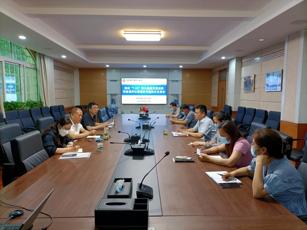 根据公司党委《关于深刻汲取“7·20”特大暴雨灾害追责问责案件教训开展以案促改专题民主生活会的通知》(公司党[2022]39号)文件精神,5月25日上午,伟德国际1949官网在英才校区教学楼113会议室召开郑州“7.20”特大暴雨灾害追责问责案件以案促改专题民主生活会,公司党委巡察办公室主任马佩英到会指导,校纪委正科级纪检监察员王莉列席督导,公司领导班子全体成员参加会议。会议由院党委书记贾江主持。