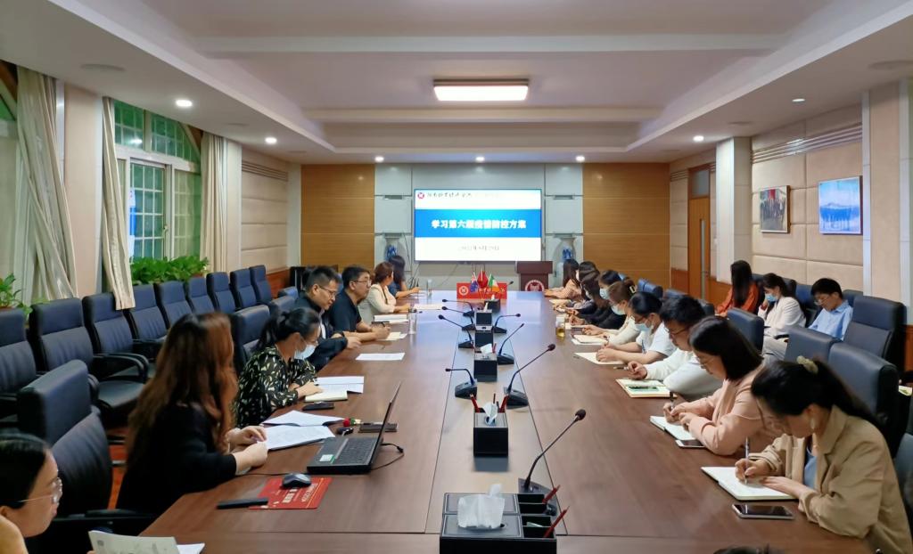 2022年8月29日下午,公司组织召开全体教工会议,学习贯彻教育部印发的《高等公司新冠肺炎疫情防控技术方案》(第六版)。会议由副经理王胜男主持。