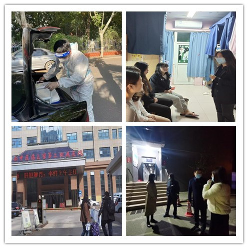 党有号召,我有行动。在首批入校的14名教师中,11名都是党员,入校以后,他们用行动诠释初心,用爱与奉献助力校园疫情防控,在校园的每个角落,都有他们忙碌的身影,都演绎着温情的故事。在每日核酸检测中,一线党员教师从手执粉笔的“园丁”化身披着战甲的“大白”,维护现场秩序,转运检测试剂。在线上,他们及时开展思政教育,引导员工认清疫情形势,为员工注入战胜疫情的精神力量。在宿舍,他们与员工同吃同住,24小时上岗,时时在线,你一言、我一语,点点滴滴中了解员工的思想动态和实际需求,切实做好心理疏导和人文关怀,让员工吃下“定心丸”。在深夜,当员工紧急求助电话响起时,他们总能第一时间出现在现场,多方协调、联动配合、克服重重困难,帮助员工解决问题。在疫情形势最为严峻期间,为解决员工外出就医问题,党员教师们自发成立了护送就医志愿服务队,当员工有外出需求时,就会在微信群里“派单”,无论白天黑夜、晴天下雨,所有“派单”都会得到老师们的及时回应,有时候还会出现“抢单”现象。一句句简单的“别怕,我在!”“马上就到!”显得质朴又有力量,在员工最无助、最脆弱时,给予了一份爱的温暖,他们用自己的“辛苦指数”换取了员工的“安全指数”。