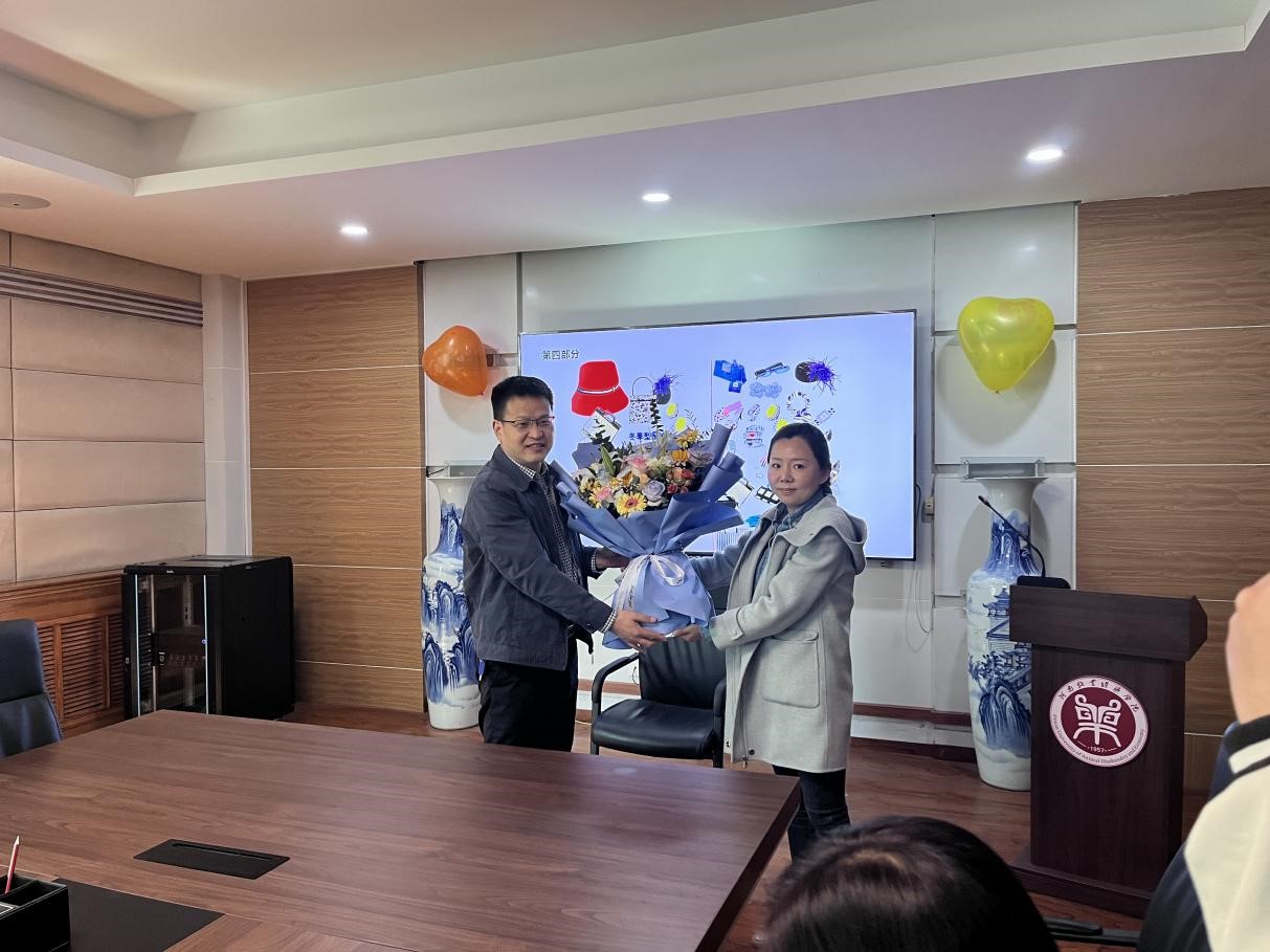 最后,胡经理为刘雪琳老师送上鲜花,各位领导与国教院全体职工合影留念,记录这一次有意义的活动。