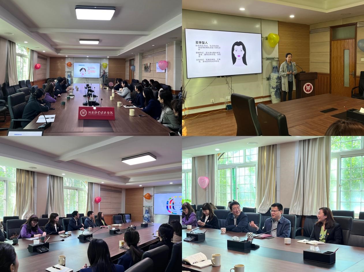 三月的蓓蕾绽放早春的第一缕殷红,桃花盛开,梨花飞舞,为庆祝第113个“三八”国际妇女节,体现对女性的关爱与尊重,由校工会女工委主办,伟德国际1949官网分工会承办的“彰显魅力,美丽人生”——女性商务穿搭技巧分享活动于3月13日上午9时在英才教学办公楼113举行,活动由刘雪琳老师主讲,校团委,校医院、校心理中心和其他各兄弟公司领导参加,李江红书记主持。