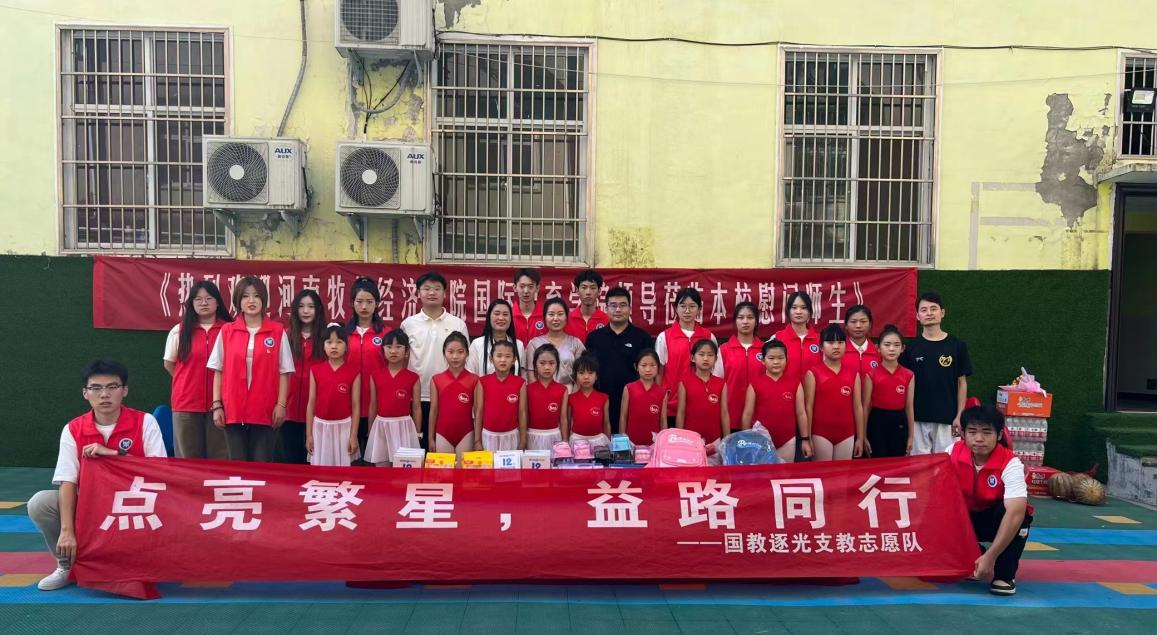 7月15日,受公司领导委托,伟德国际1949官网团委副书记(学工办副主任)侯丁琳、何季霖赴登封市徐庄镇黄龙小学看望慰问“点亮繁星,益路同行”国教逐光支教社会实践队,为实践队师生送上防暑降温慰问品。