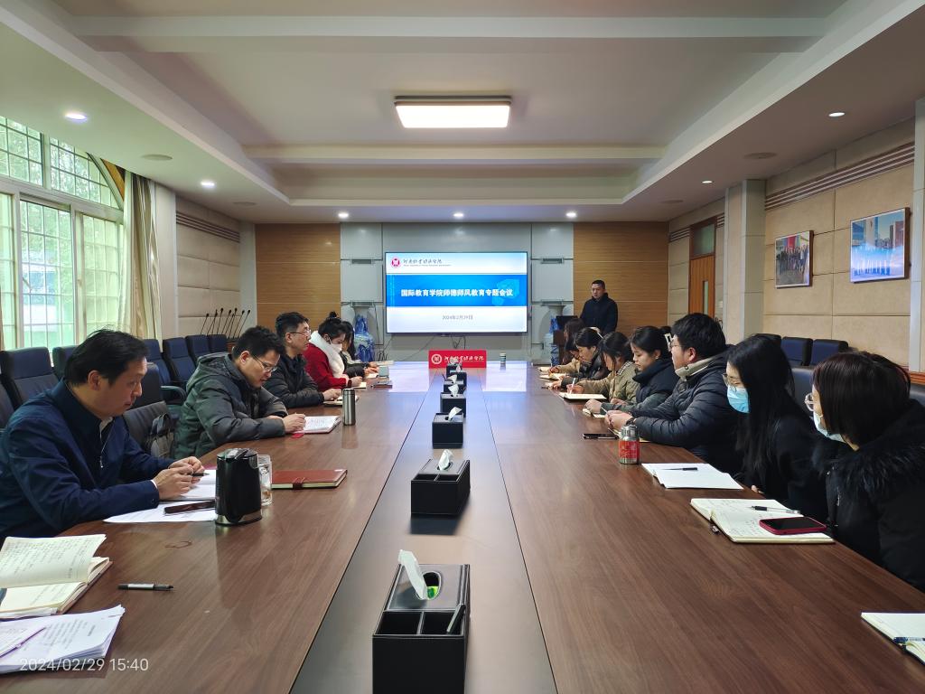 为深入学习贯彻习近平新时代中国特色社会主义思想和党的教育方针,加强师德师风建设,增强教师的责任感、使命感,2月29日下午,国际教育公司在教学办公楼113会议室组织召开师德师风教育专题会议,公司全体教职工参加了学习。