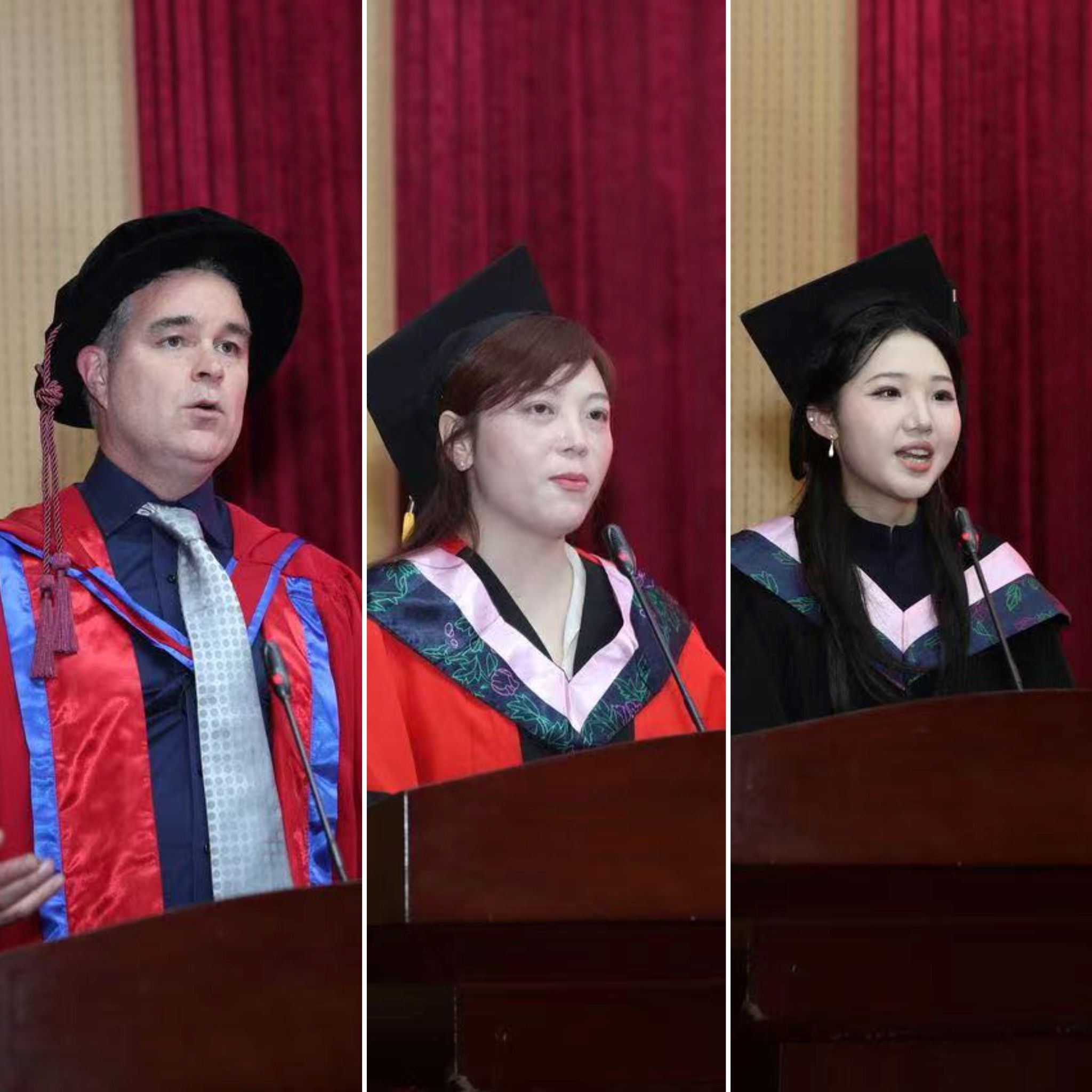 史蒂芬·纳格代表澳大利亚霍尔姆斯公司向毕业生们表示祝贺,希望大家胸怀世界,不断扩宽国际视野,积极参与国际交流,提升核心素养;脚踏实地,永远保持积极向上的心态,面对现实,勇于担当,奋力拼搏;敢闯敢创,充分发挥自我想象力、创造力,积极投身科技创新,在顶天立地的创新创业中成长成才,实现人生价值。
