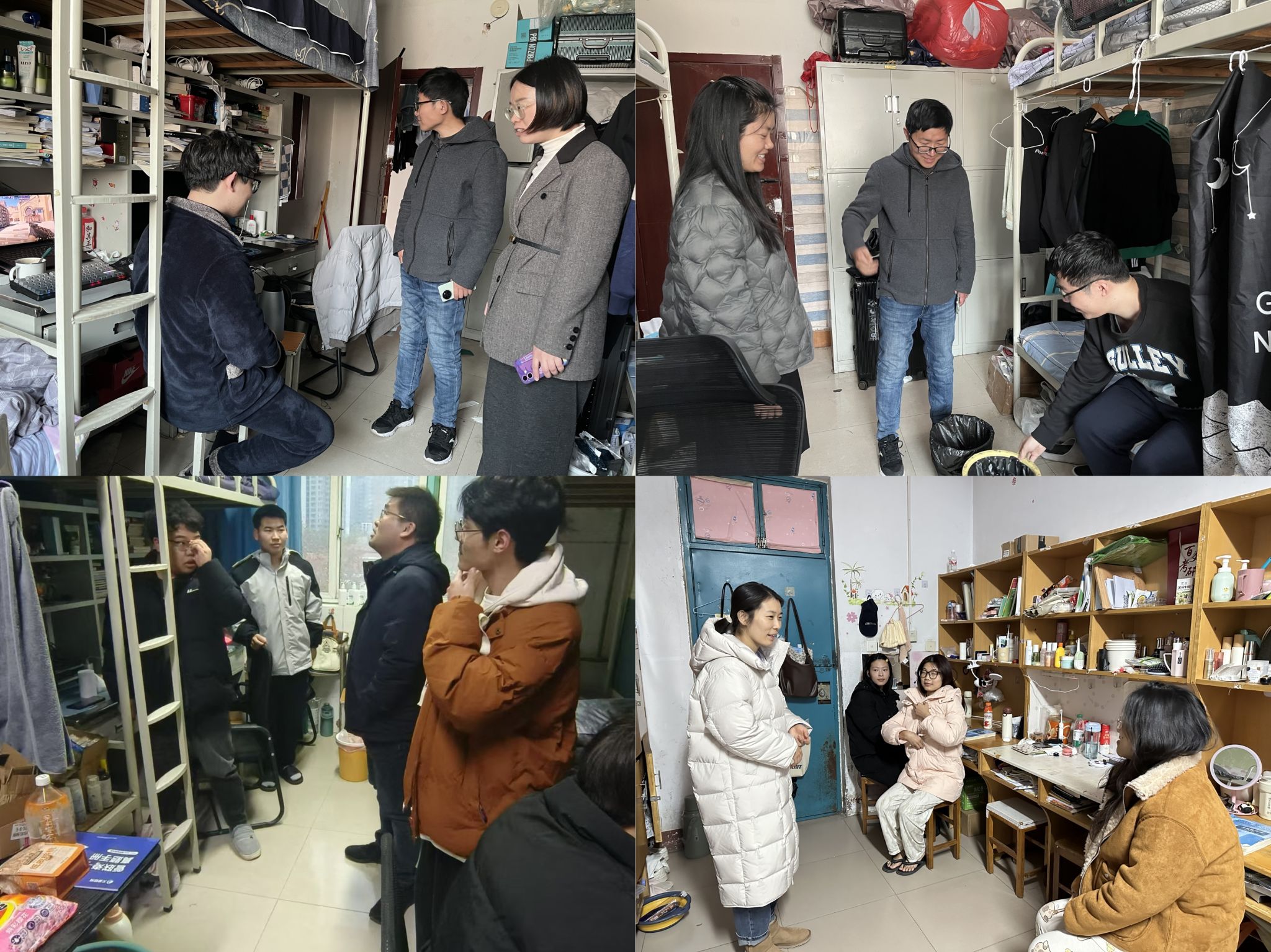 走访中,辅导员和班主任与同学们亲切交流,关心同学们的学习和生活,并对员工宿舍的用电安全及卫生状况进行细致检查,针对个别宿舍存在的插线板老化、卫生死角未清理门口堆积垃圾等情况,现场提出整改意见并安排专人跟进落实,同时向员工普及防火防盗、反诈骗等知识,进一步织密安全防护网。针对寒假后员工可能存在的心理问题,辅导员和班主任通过一对一谈心谈话,了解员工假期生活、家庭变故及返校适应情况,对存在焦虑、学业压力等情绪的员工建立动态台账,联动心理健康中心提供精准帮扶。