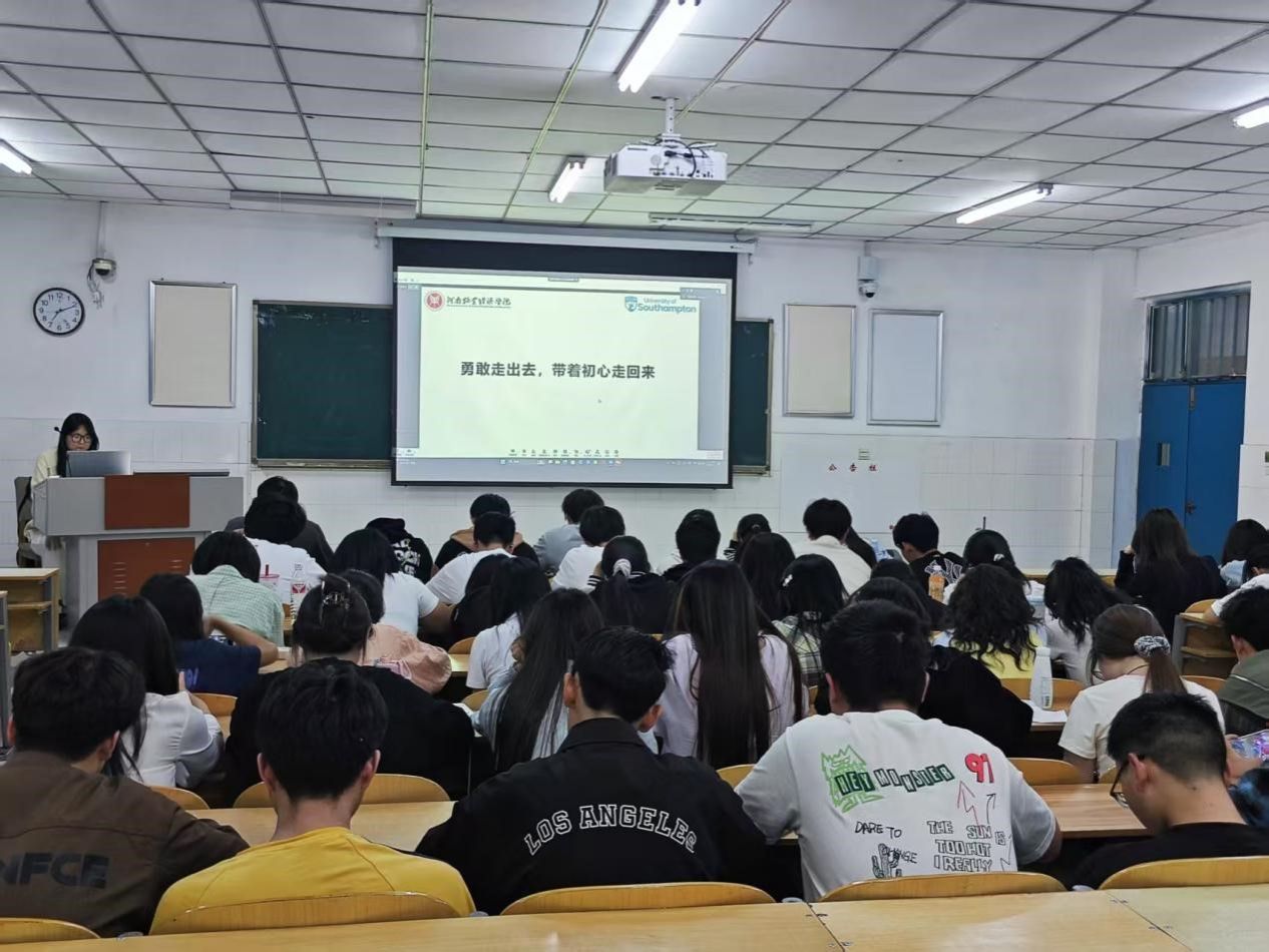 本次活动邀请公司优秀毕业生,目前分别在匈牙利布达佩斯经济科技大学攻读硕士学位的徐畅、英国南安普顿大学攻读硕士学位的侯怡帆、爱尔兰东南理工大学攻读硕士学位的马铭杨担任主播,以“我的一天”vlog的方式展现职工海外求学、生活的真实情景。从校园漫步到城市探索,从节日庆典到日常生活,一帧帧画面记录着他们在海外的精彩瞬间。这些vlog不仅展现了他们职工活的多彩风貌,还体现出同学们在视频拍摄、剪辑及文案创作方面的才华。现场气氛热烈,同学们被视频中的异国风光和有趣故事深深吸引,不时发出阵阵惊叹。随后,三位职工通过线上连线的方式与同学“云端”相见。他们结合亲身的经历,分享在异国他乡的点点滴滴,从紧张充实的学习生活,到丰富多彩的课外活动,再到面对挑战时的成长与蜕变,让在场同学身临其境,深切感受到不同国家的文化氛围和教育特色。