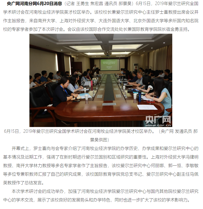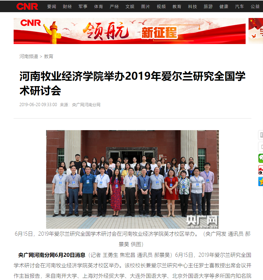 央广网报道公司举办2019年爱尔兰研究全国学术研讨会