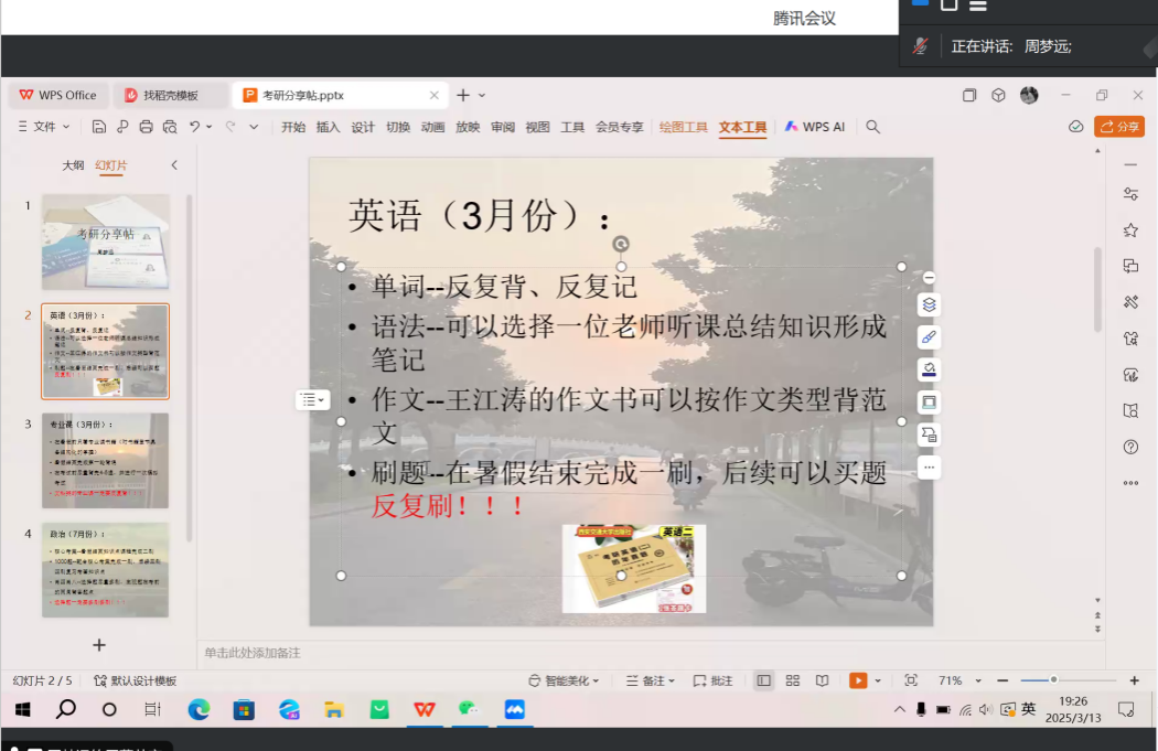 讲座中,苗玉博、周梦远同学毫无保留地将自己的复试经验倾囊相授,从前期准备、复试备考、复试技巧、面试礼仪、答题思路等多个方面,进行了全面且细致的分享。任绍华、陈羽洁同学强调了信息收集的重要性,告诉大家要充分利用公司官网、考研论坛、直系学长学姐等多种渠道,去了解目标院校复试的具体要求、考试科目、参考书目、历年分数线、报录比等关键信息,做到知己知彼。