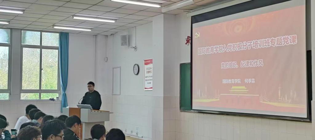 何季霖从“党的组织架构”、“党的组织制度”、“党的纪律和纪律处分”、“对青年老员工的要求”四个方面进行了详细讲解。首先,他通过观看视频和举例子的方式详细介绍了党的组织架构,指出民主集中制是党的根本组织制度和领导制度,坚持和健全民主集中制,是马克思主义政党同其他政党的一个根本区别。随后,他详细讲述了党的六大纪律、五种纪律处分和党员廉洁自律规范等内容,重点介绍了党的十八大以来党的作风建设的成效和经验。他指出作为入党积极分子,要在入党之初就了解党的各方面纪律要求,并时刻以党的纪律严格要求自己,做到“讲规矩,守纪律”;希望所有同学要通过此次培训学习,能够做到思想上旗帜鲜明、学习上守正创新、工作上模范带头、生活上严于律己;能够在学习、工作和生活中做到惟其磨砺、始得玉成。