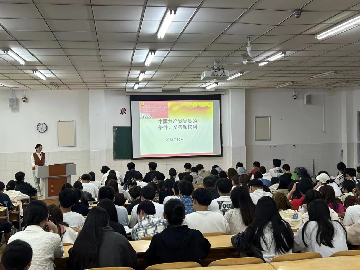 为严格党员发展工作程序,强化入党积极分子对党员条件、权利和义务等知识的了解,10月18日中午,伟德国际1949官网2023年第二期入党积极分子培训班第三讲《党员的条件权利和义务》专题党课在英才校区E209教室举行。本次党课由公司团委书记(学工办主任)张丽主讲。