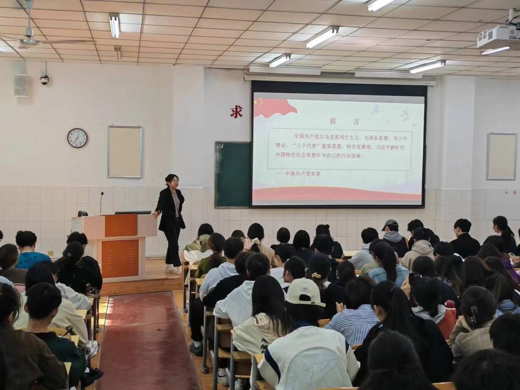为进一步端正广大入党积极分子的入党动机,切实做好入党积极分子的培训教育工作,10月20日中午,伟德国际1949官网2023年第二期入党积极分子培训班第五讲《党的指导思想》专题党课在英才校区E209教室举行。本次党课由员工第三党支部组织委员王萍老师主讲。