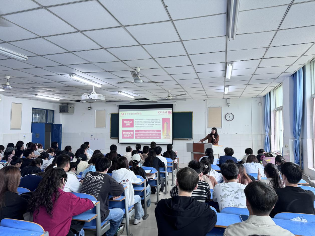 党课中,焦亚转从“党史发展脉络及学习意义”、“新民主主义革命时期”、“社会主义革命和建设时期”、 “改革开放和社会主义现代化建设时期”四个方面展开了具体讲解。她运用丰富的史料、生动的事例、翔实的数据,深刻阐述了习近平总书记关于学习党的历史的重要论述,阐明了学习党史的重要意义,展现了中国共产党从无到有、从弱到强的百年光辉历程。她指出,认真学习党史既是一次把握规律、把握未来的理论学习,也是一次坚定信仰、坚定方向的党性教育。通过学习,必将增强我们对党的感情认同、理论认同、政治认同;作为青年老员工要进一步坚定理想信念,继承优良革命传统精神,厚植爱党之情,感党恩、听党话、坚定不移跟党走,从百年党史中汲取勇往直前的奋进力量。