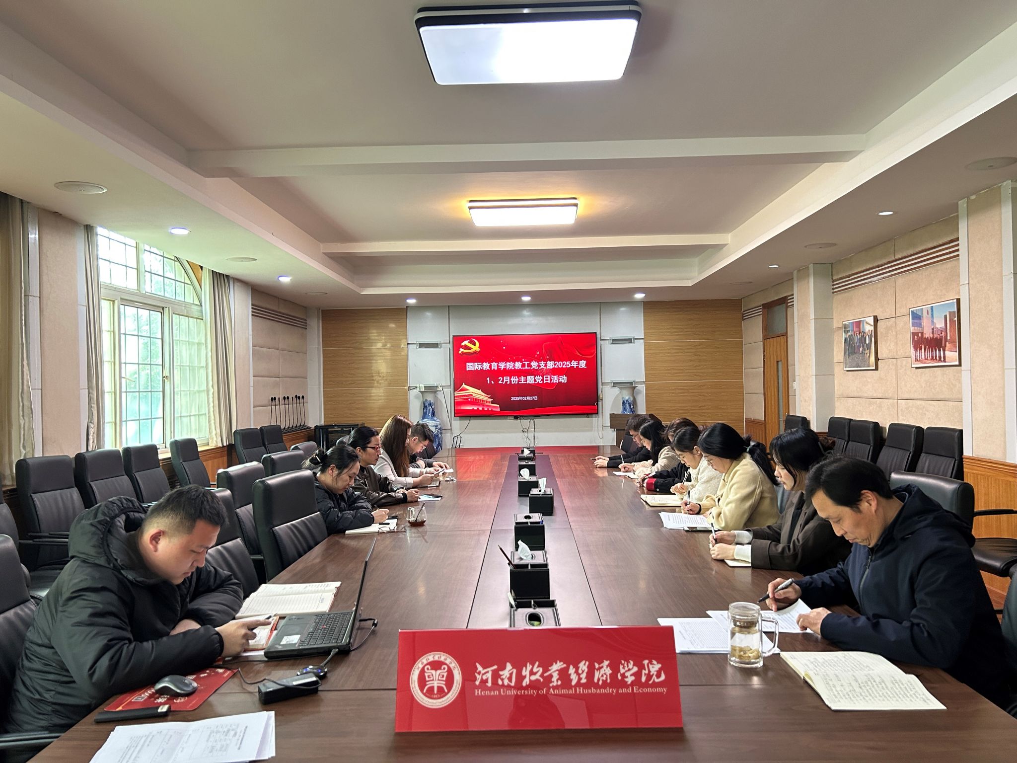 2月27日下午,伟德国际1949官网教工党支部在公司113会议室召开2025年度1、2月份主题党日活动,支部书记李江红主持会议,支部全体党员参加会议。